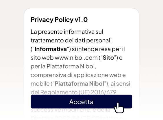 Nibol è pienamente conforme al GDPR e utilizza tecnologie di crittografia avanzate per proteggere i tuoi dati. Tutte le informazioni sono archiviate su server sicuri in Europa e trattate con la massima trasparenza.