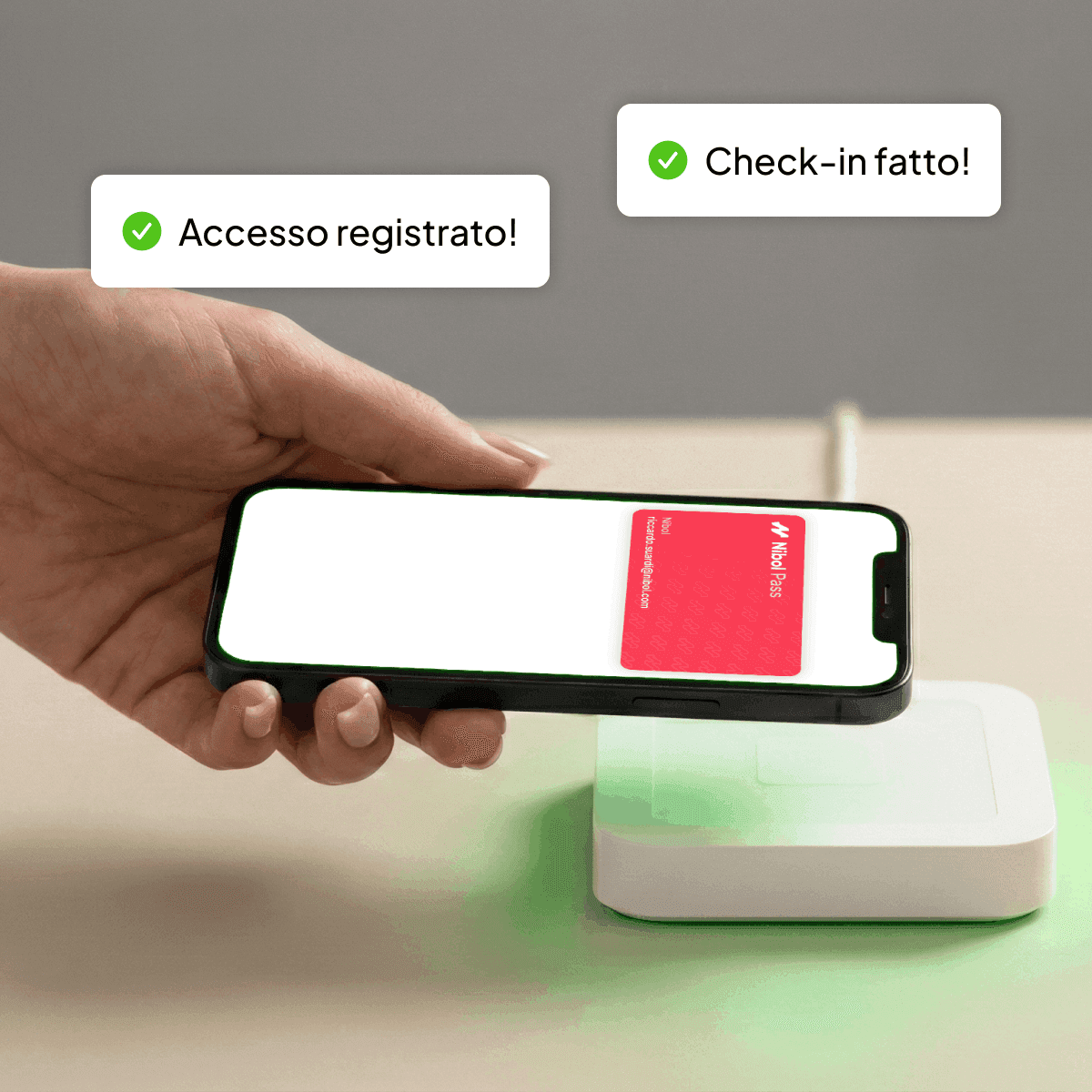 Permetti ai tuoi dipendenti di utilizzare un badge come stessero pagando un caffé al bar. Nibol Pass sfrutta la tecnologia NFC (sia iOS che Android). Nessun rischio di perderlo o di dimenticarlo.